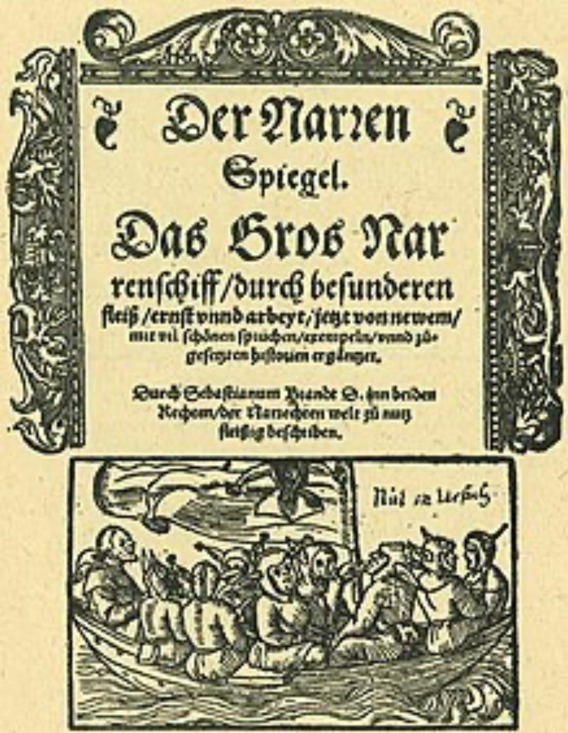 I’ve alluded to this before. I studied in great detail the early transmission of ideas in the early German Reformation, 1518 to 1530, and the world turned upside down. Sebastian Brant’s late fifteenth-century book, The Ship of Fools, played a really big part in the re-archetyping of the Pope as Antichrist and the use of memes and cartoons to re-archetype the church in a certain way, done by the leaders, the oligarchs.