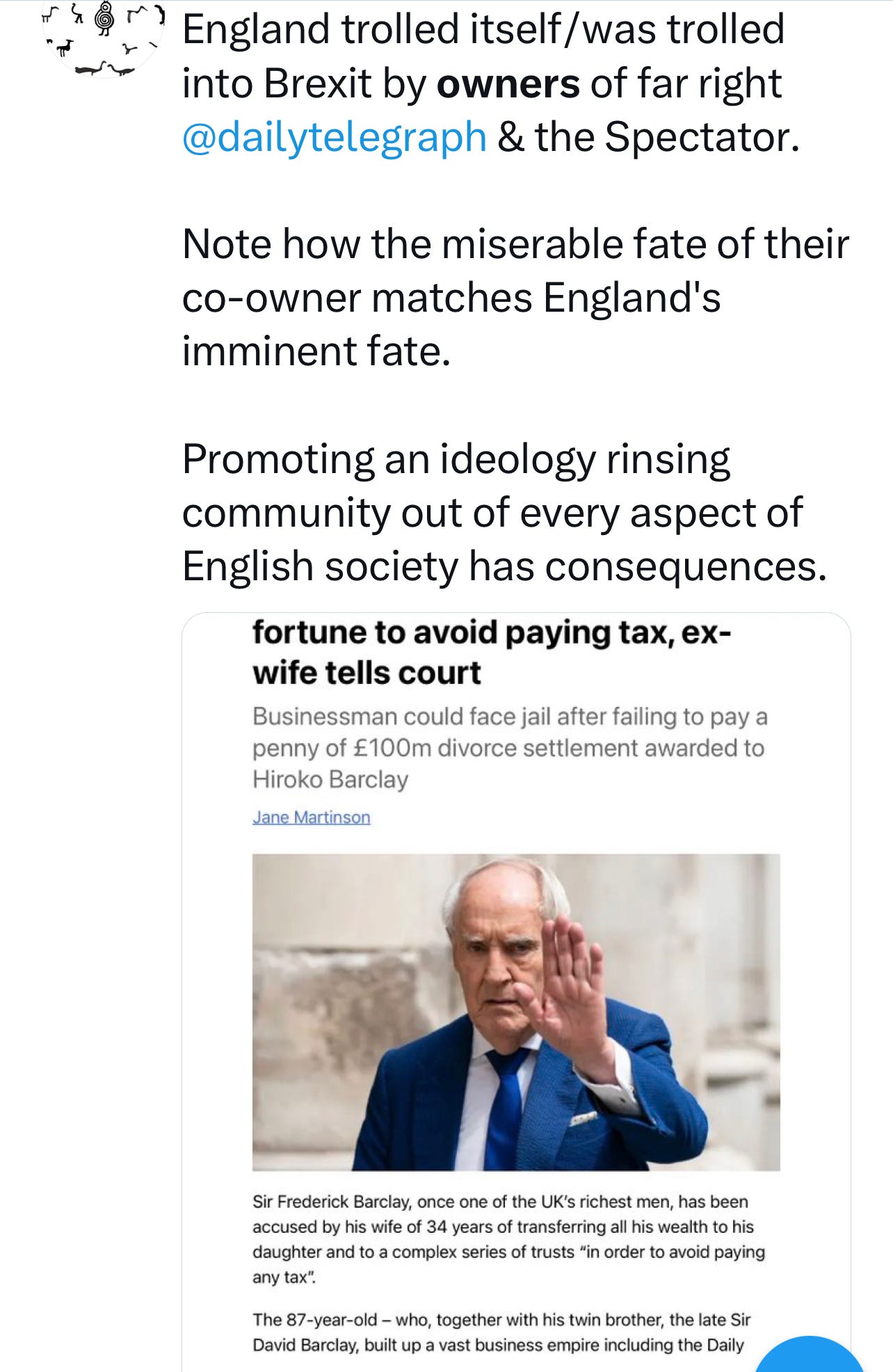 Step 5: Entities which profited from that £1t expenditure use their profits to buy the Telegraph from bankruptcy.