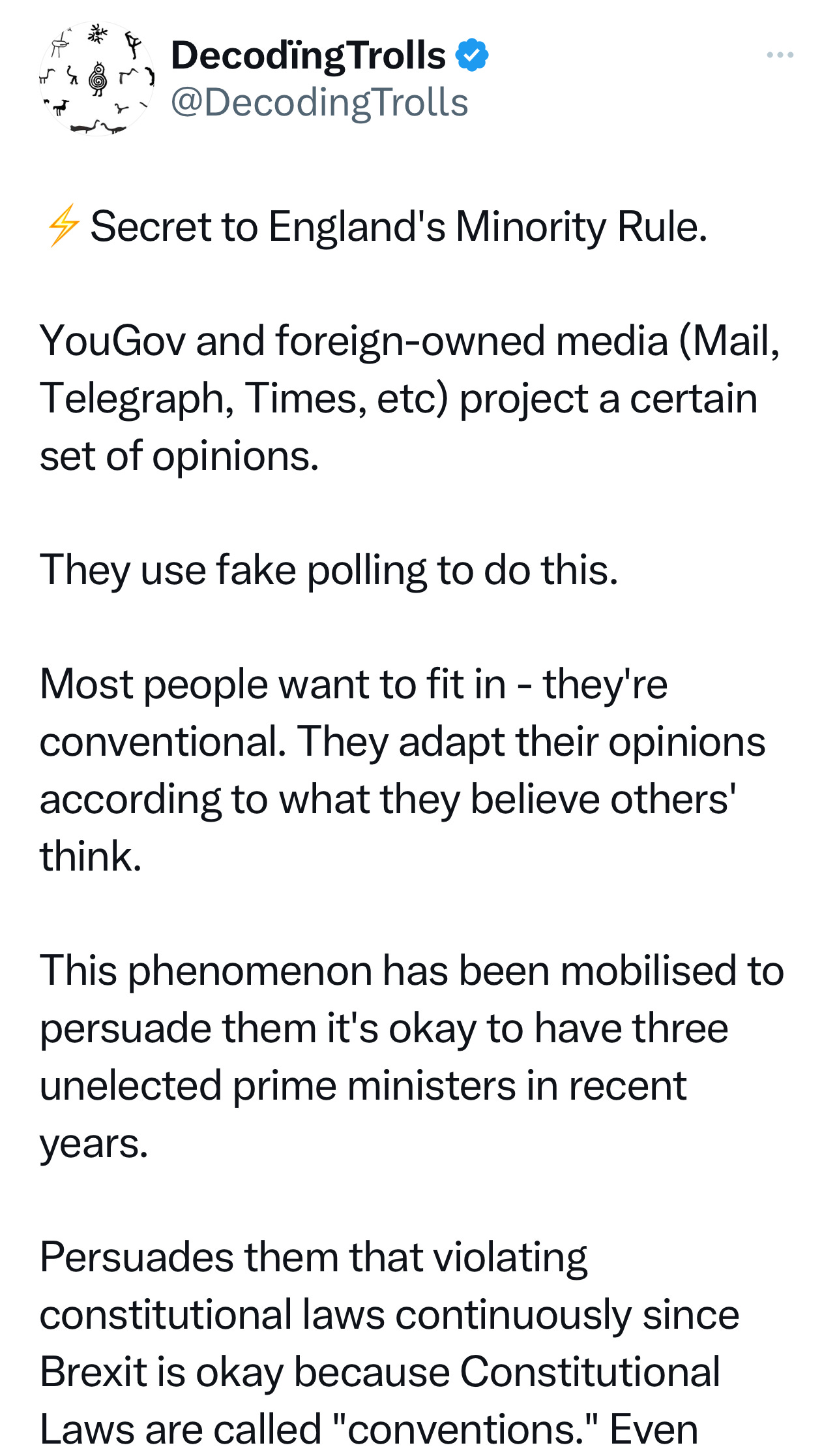 Step 2: Publish constant Disinfolklore whose strategic purpose is to reverse the entire post-WWII rules based order (no welfare, no human rights, no freedom of movement, no healthcare, no equality of opportunity,...).