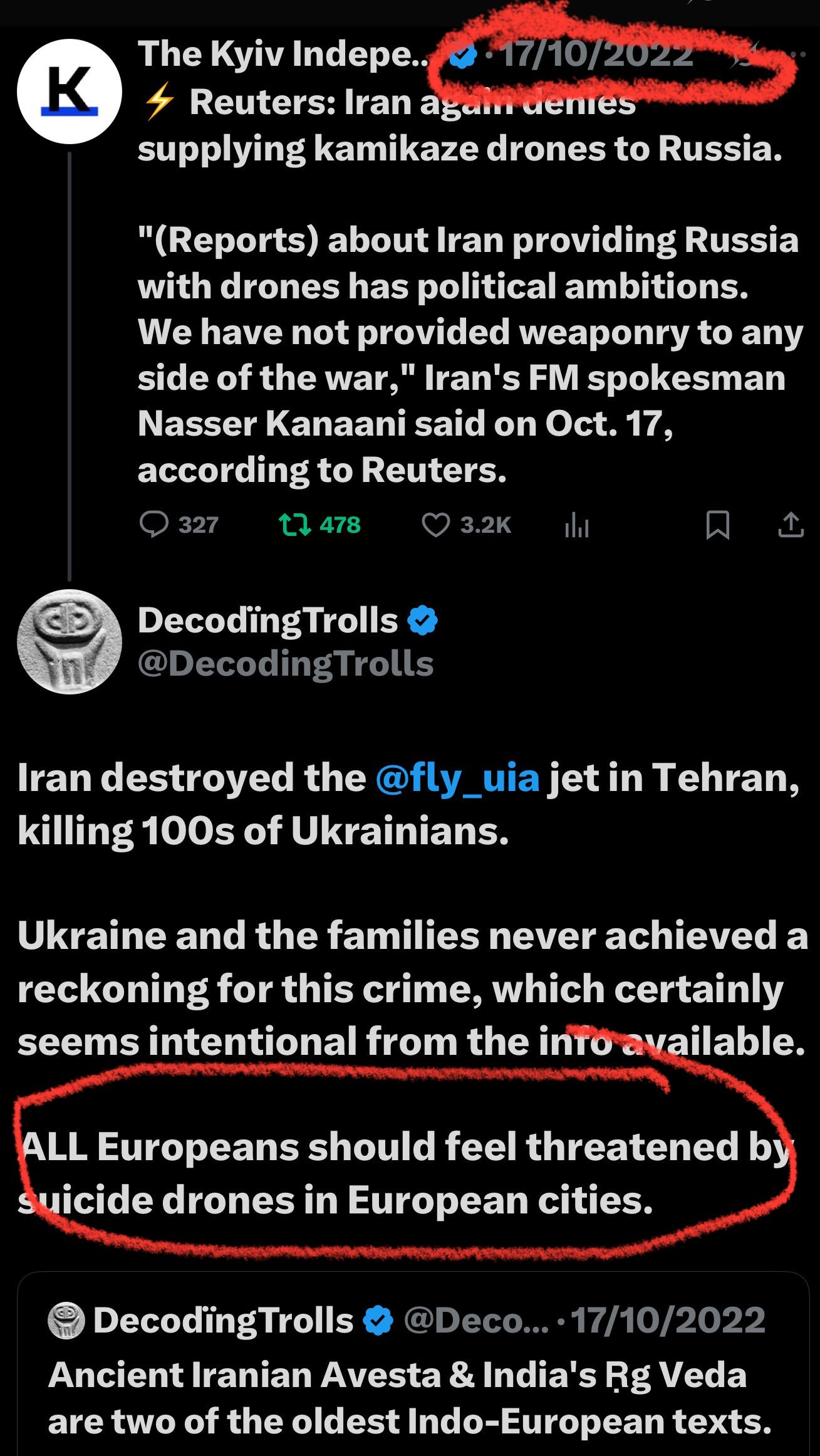 A year later (see below Tweet) I asked (rhetorically) how we would respond when our children asked us how we reacted when Iranian drones started murdering Europeans.