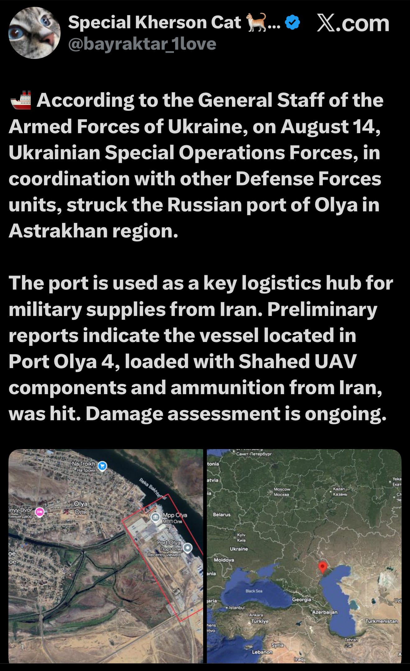 Today, having already destroyed the USSR’s Black Sea fleet Ukraine sunk a Ruschist ship carrying weapons in the Caspian Sea.