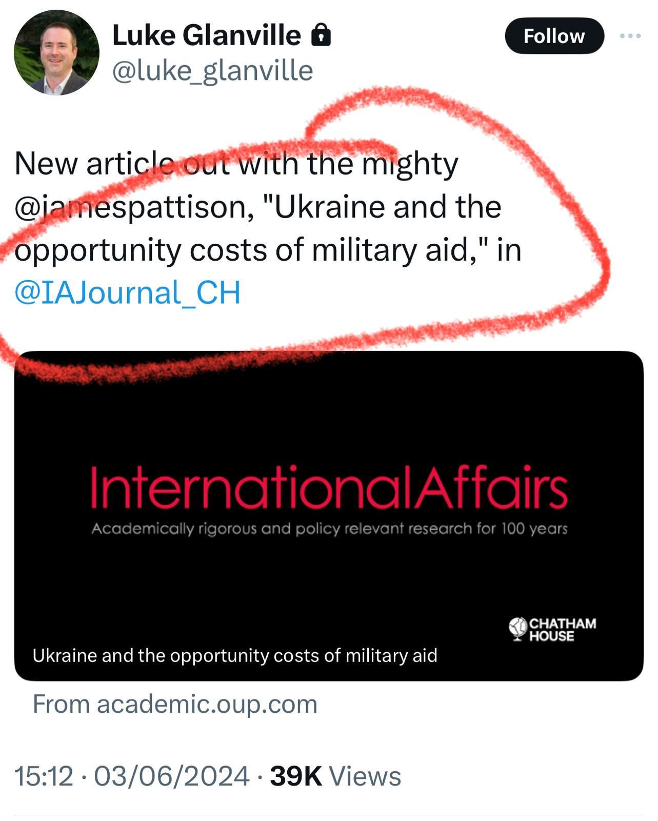 Cheaper to force Ukrainians to accept the genocidal murder of 42m of their kin and ecocide (including destruction of Europe’s largest nuclear power plant and some of its largest dams) than to enable their self-defence.