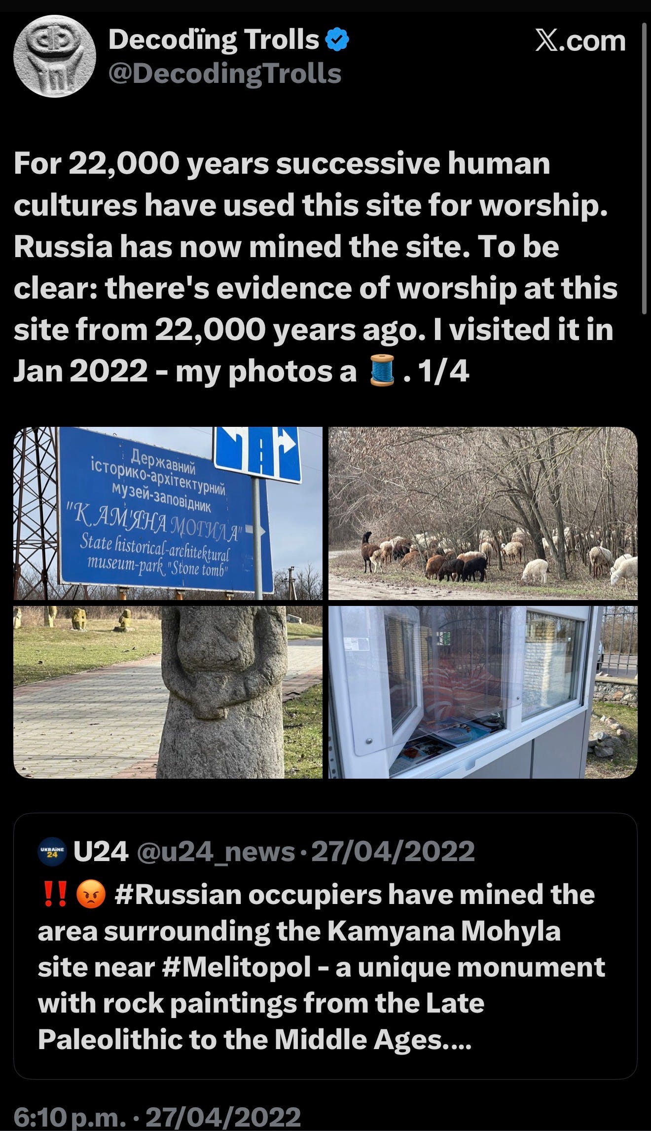 Russia has now mined and pillaged this ancient site, which had a near unbroken line of a 22,000 year long history as a sacred place.