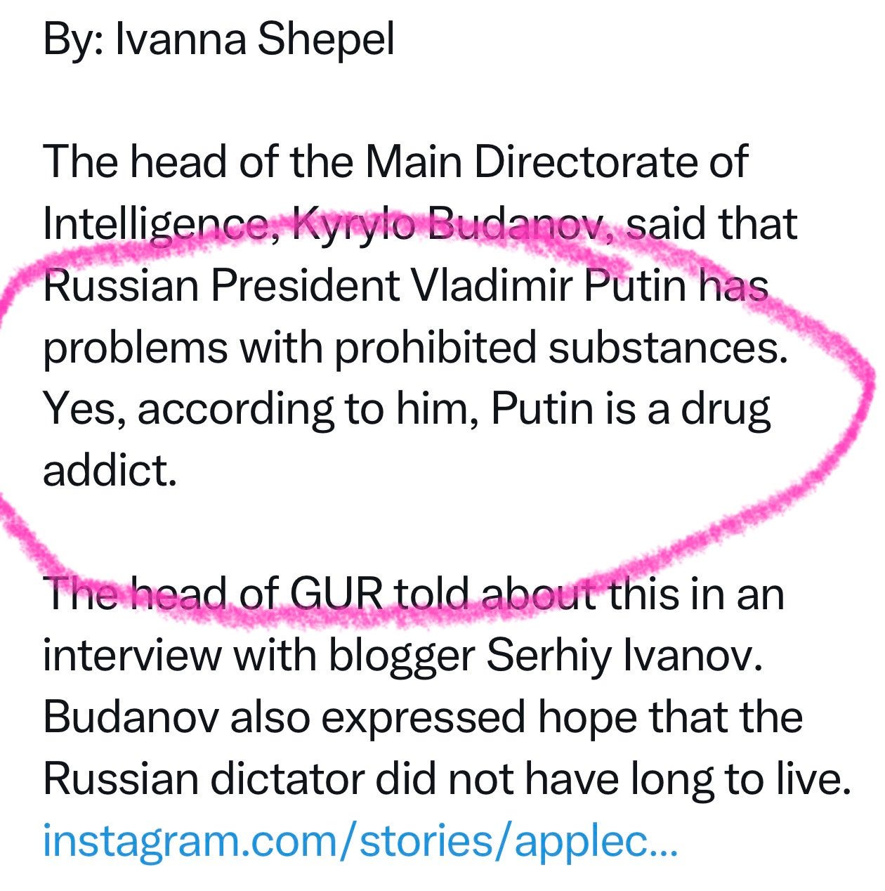 ⚡️Putin's Drug Addiction - Head of Ukraine's military intelligence reveals Putin is addicted to illegal narcotics.