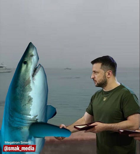 Ruschist "oppositionists" are zen about murdering hundreds of thousands of Ukrainians, but animated about shark bait?! At least they have some feelings, I guess🤷🏽♀️
