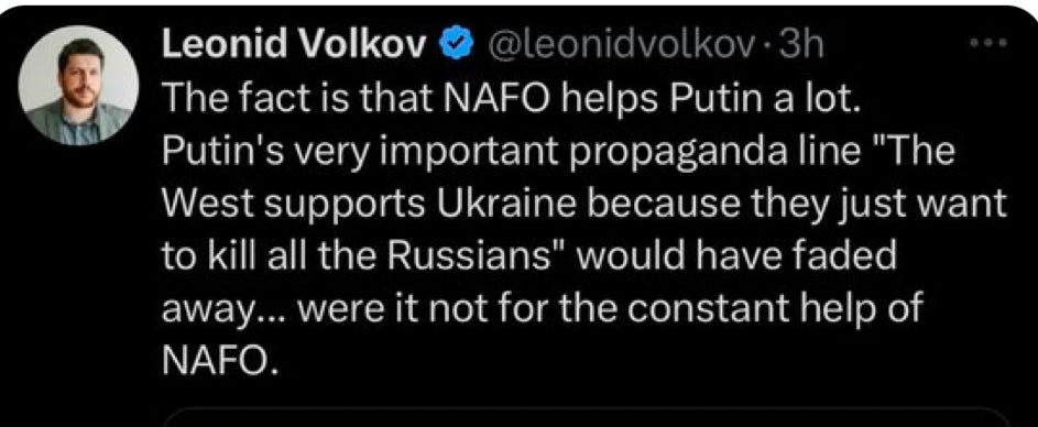 ⚡️So, basically, according to Ruschist opposition it's leonidvolko, if it wasn't for #NAFO, Ruschist Nazi Putin would still think he had a 46% approval rating in Ukraine?