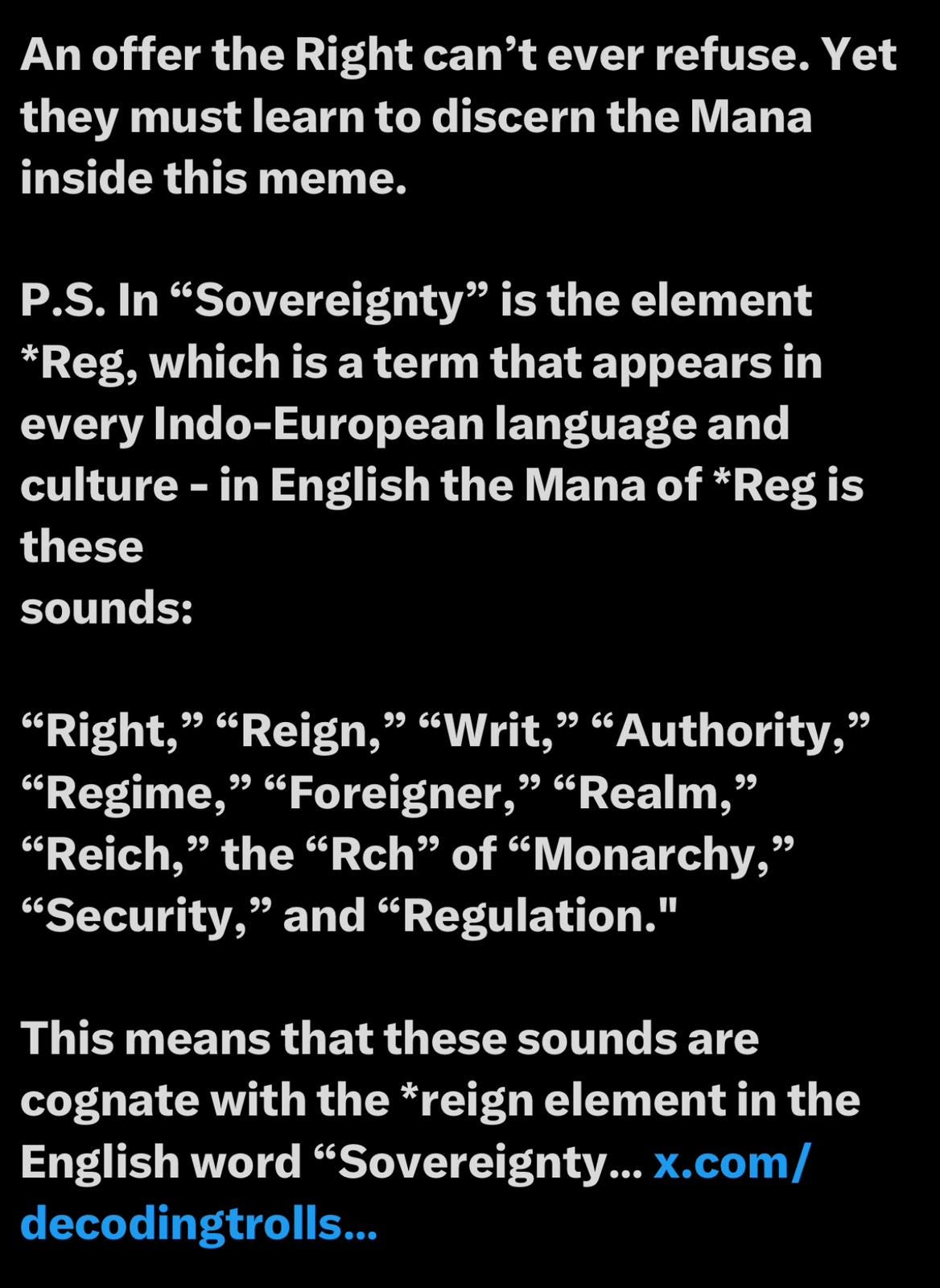 And the so-called Right (note the ‘Rt’ sound in SoveREIGNTy, SecuRITy, and FeRTility), without understanding why, sees a mechanical means (in raising immigration of immediately transferring Us and them between Inner and Outer Realm). Once we’re maintained in that state of fear (flight or fight) that they trigger through this rhetoric in our minds they then can hack our consent, our rational thought processes.