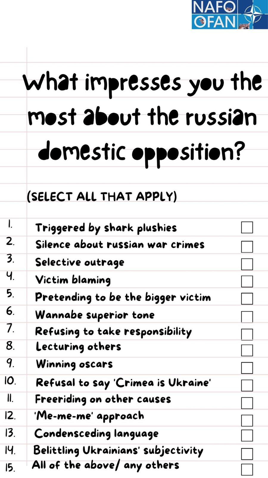 Beware of the Russian ‘Oppositionist’ who speaks once or twice about Ukraine, but who spends the rest of their time bashing Western leaders for NOT being tough enough on Ruschia.