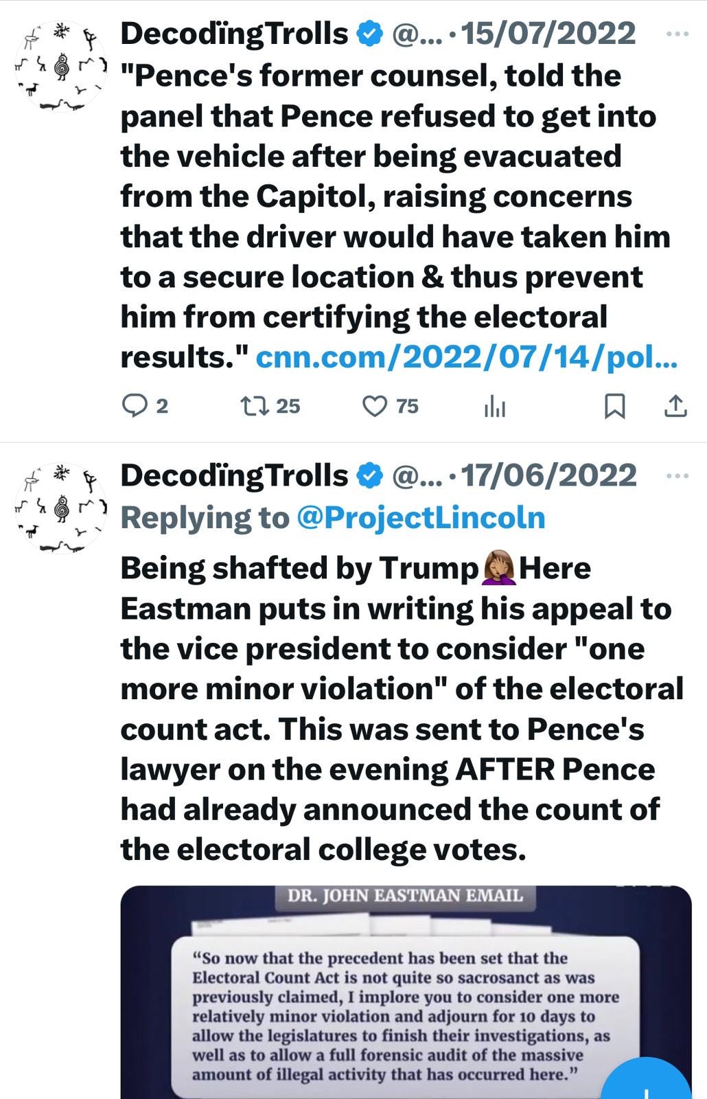 “Pence’s former counsel, told the panel that Pence refused to get into the vehicle after being evacuated from the Capitol, raising concerns that the driver would have taken him to a secure location & thus prevent him from certifying the electoral results.”