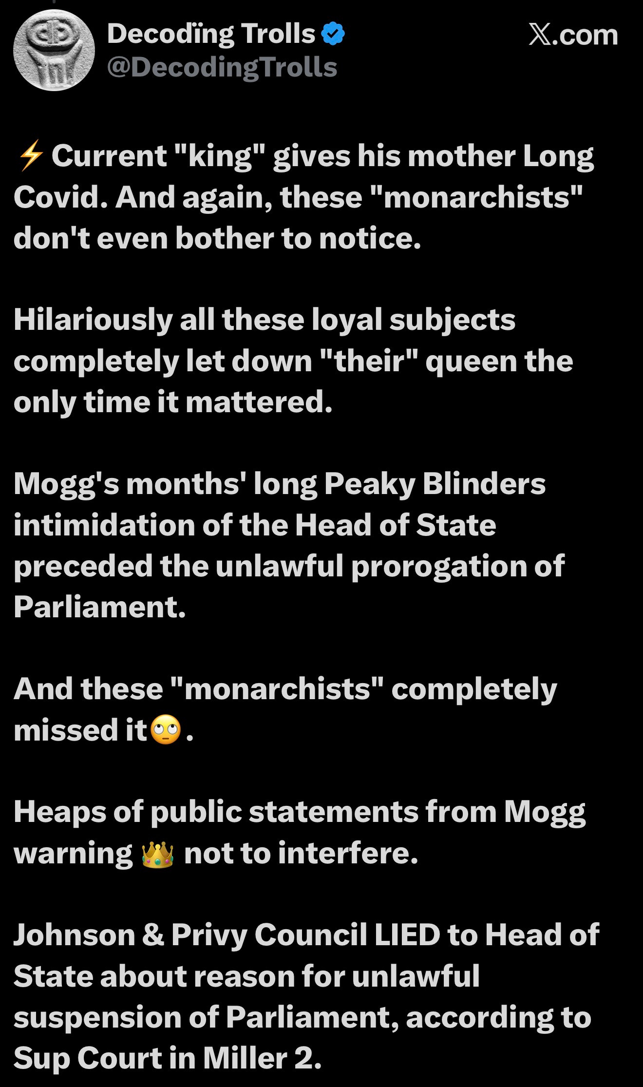 England’s anti-mask pro-Covid Sovereign gave his mother Long Covid:
