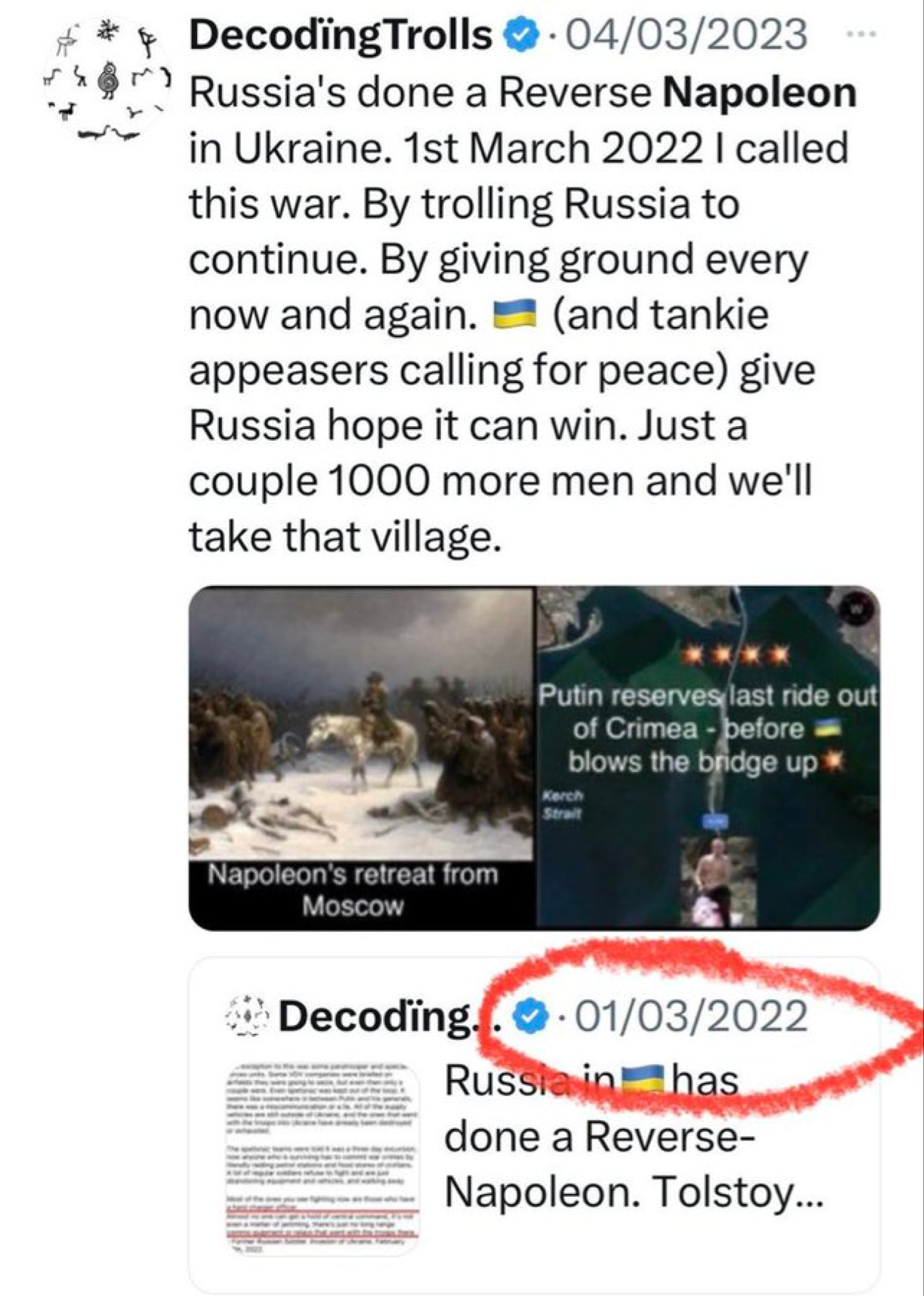 So just the idea that now the Ukraine would capitulate, it's just, it's for the birds. But of course, low information people don't understand that or people who think they can use Disinfolklore to change reality don't understand that.