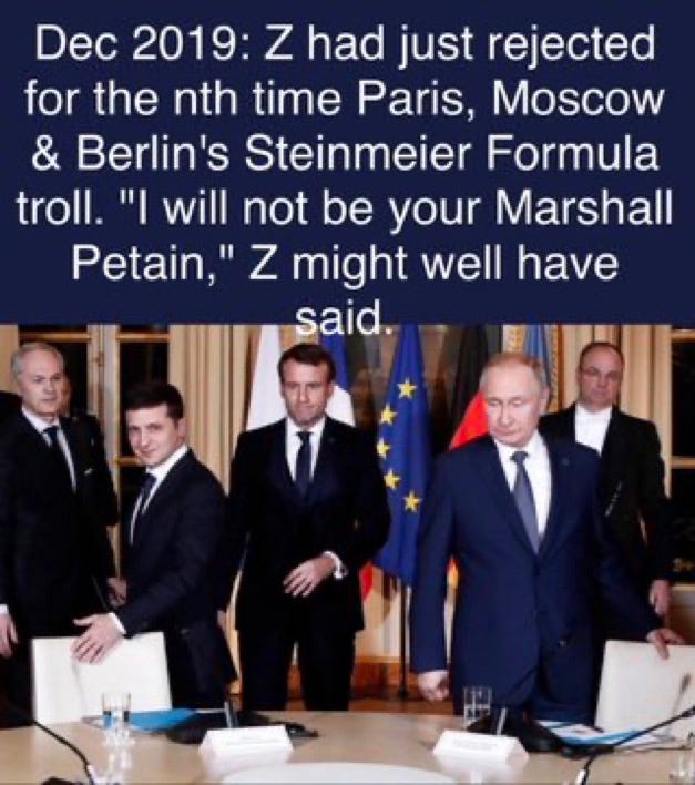 We all remember the, well, some of us might remember the December 2019 meeting in Paris, where basically Macron and Merkel and Putin put the squeeze on President Zelensky in the Elysee Palace. And Putin had been trolled into visiting Paris, believing that he would convince or that he would walk away from that meeting with the right to hold elections in Russia-occupied areas of Ukraine, specifically Luhansk and Donetsk.